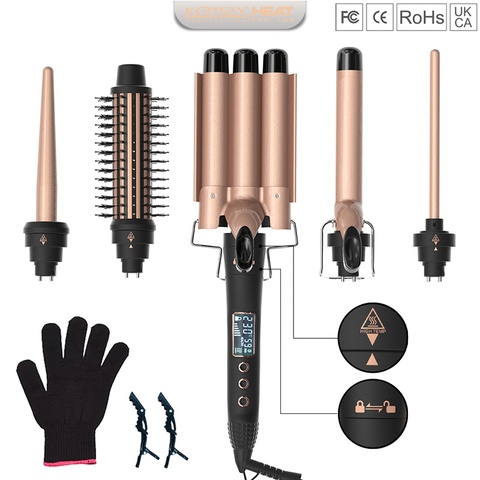 Komex Maatwerk Groothandel 3 Vat Krultang 5 In 1 Draadloze Krultang Led Temperatuur Krultang